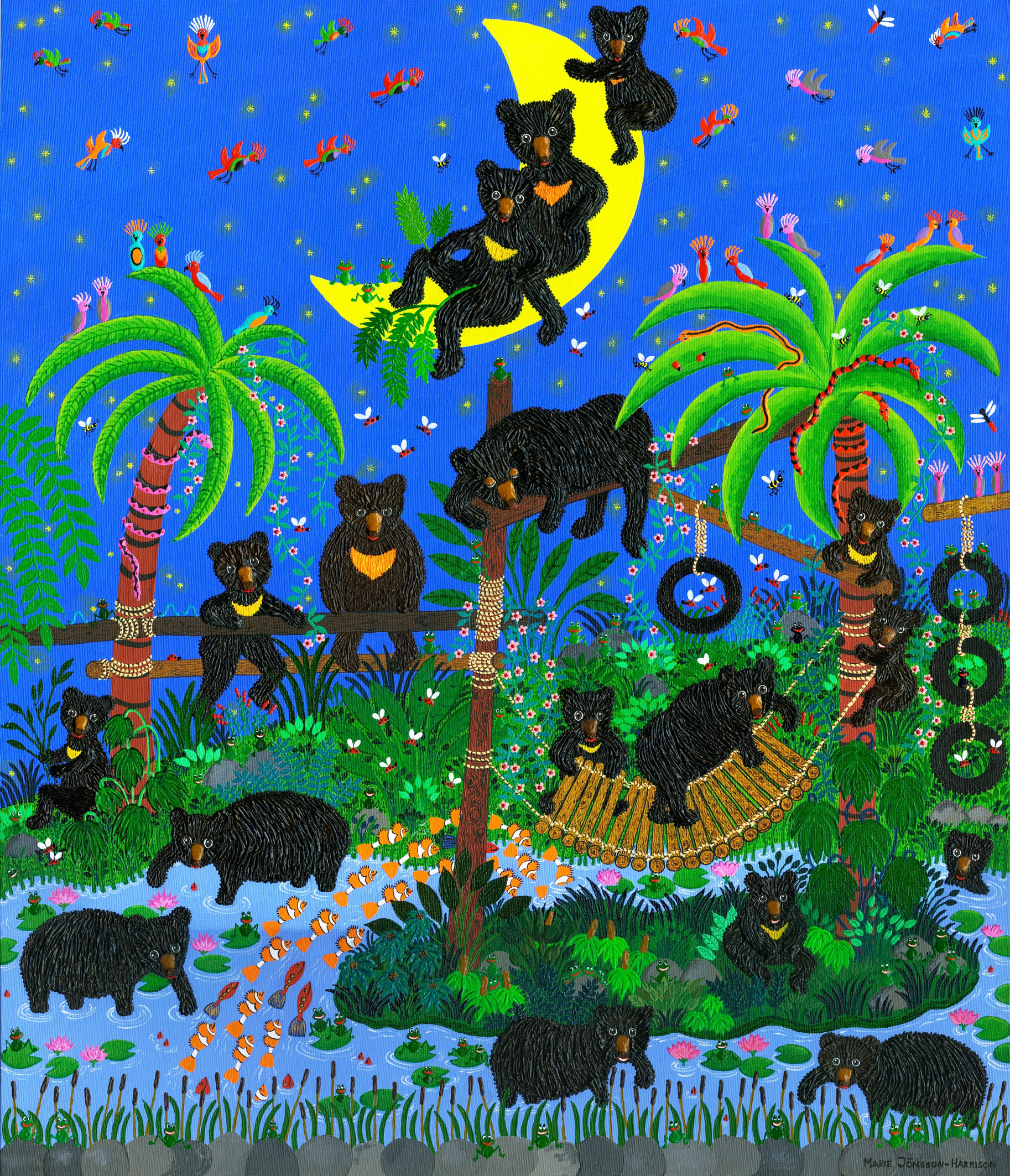 I first started this painting “Save the Moon bears” about a year ago because a dear friend, Joanna Polities was actively involved in the charity Animals Asia.
