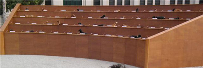 Outside of the Melbourne museum Perth based artist Bennett Miller had built a smaller scaled set of the United Nations Commission as an Art installation, for the Next Wave Festival called Dachshund UN.